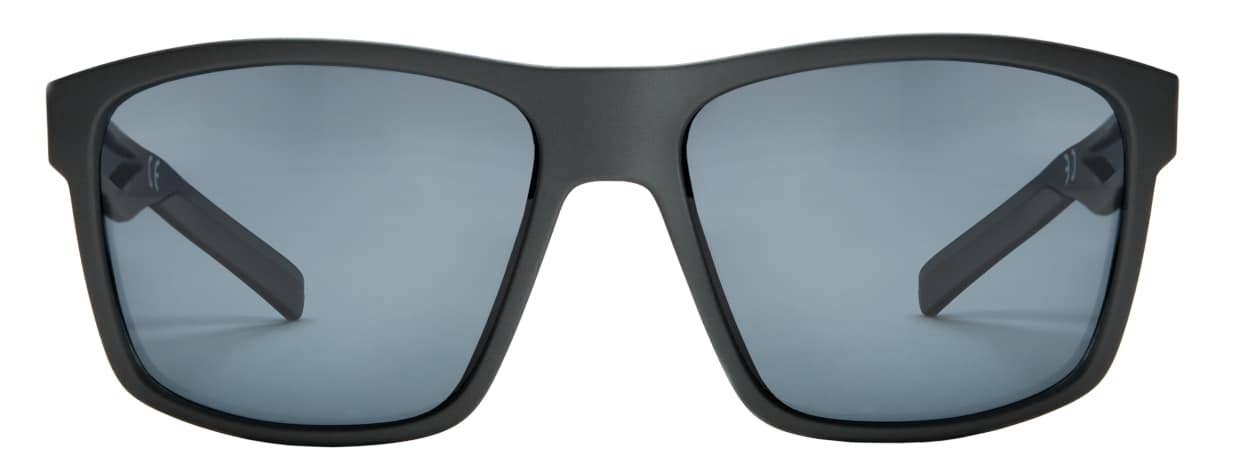 Remaldi sunglasses with UV400 grey polarised lenses. Wrap around sporty design frame in matt grey with black rubber tips for a non slip finish. UV400 filter category 3.