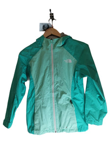 Embrace the outdoors with confidence in The North Face Girls' Turquoise Blue Full-Zip Jacket. Crafted from a durable 100% polyester shell and 100% polyester lining, this jacket features a water-repellent finish, ensuring protection against light rain and moisture. The full zip closure provides easy wearability, while the attached hood offers added protection against the elements. Designed for those who demand both style and functionality, this jacket is a testament to The North Face's commitment to quality and performance.
